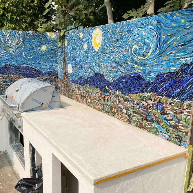 Reason: Glass mosaic tiles are resistant to weathering, making them suitable for outdoor applications. Whether it’s a garden fountain or a building’s facade, their durability and resistance to fading ensure that the design remains visually appealing over time.